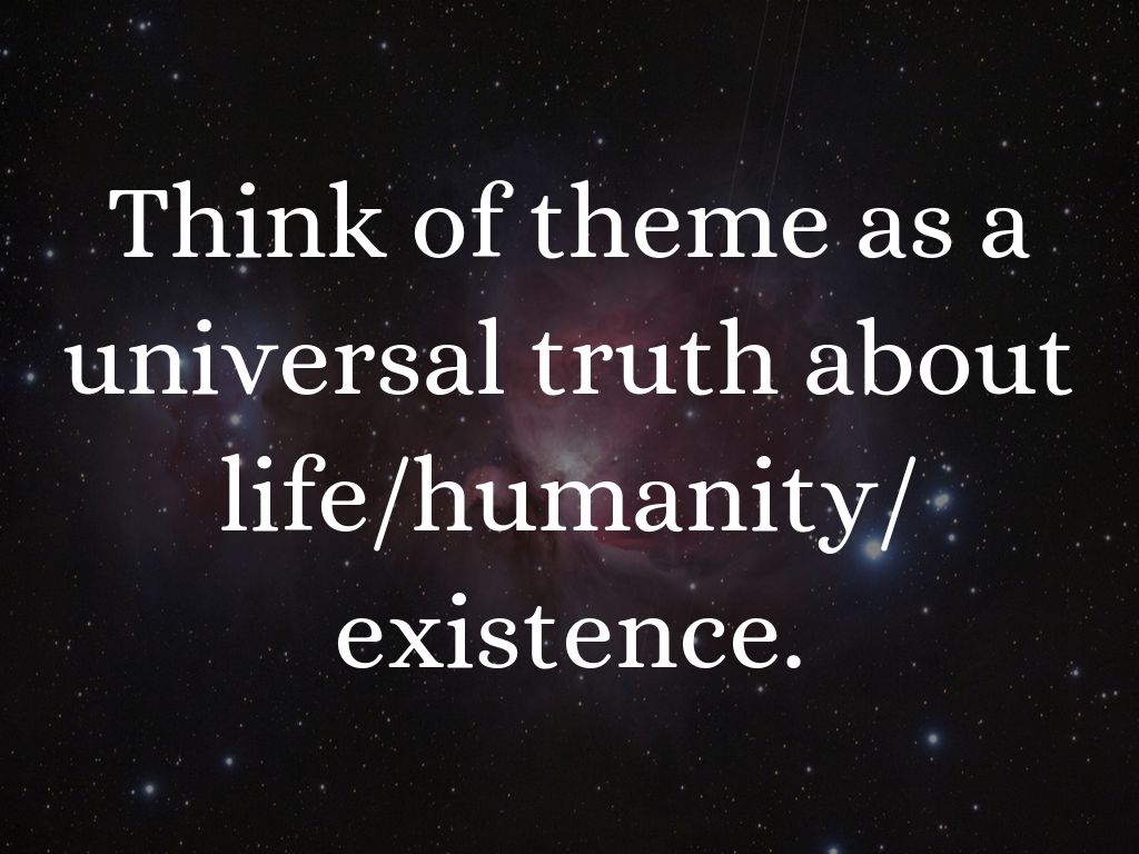 Think of theme as a universal truth about life/humanity/