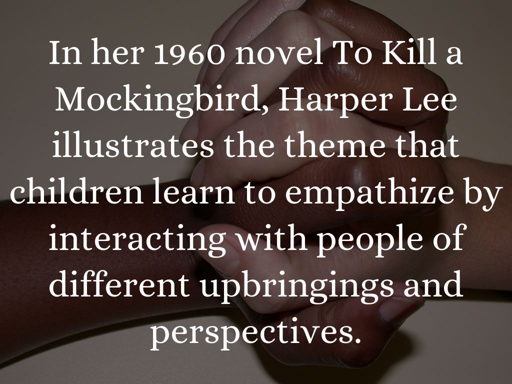 In her 1960 novel To Kill a Mockingbird, Harper Lee illustrates the theme that children learn to empathize by interacting with people of different upbringings and perspectives.