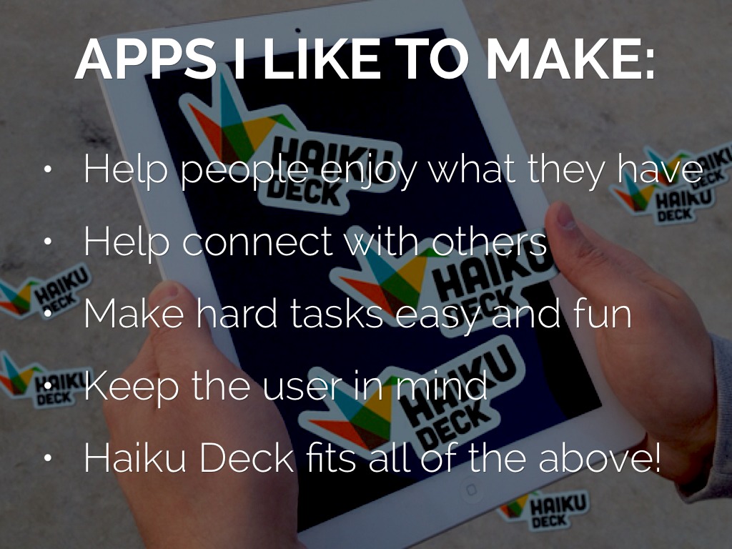 I want to make apps and products that enhance people's life experiences, not distract from them.