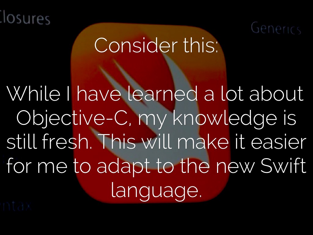 While I have learned a lot about Objective-C, my knowledge is still fresh. This will make it easier for me to adapt to the new Swift language.