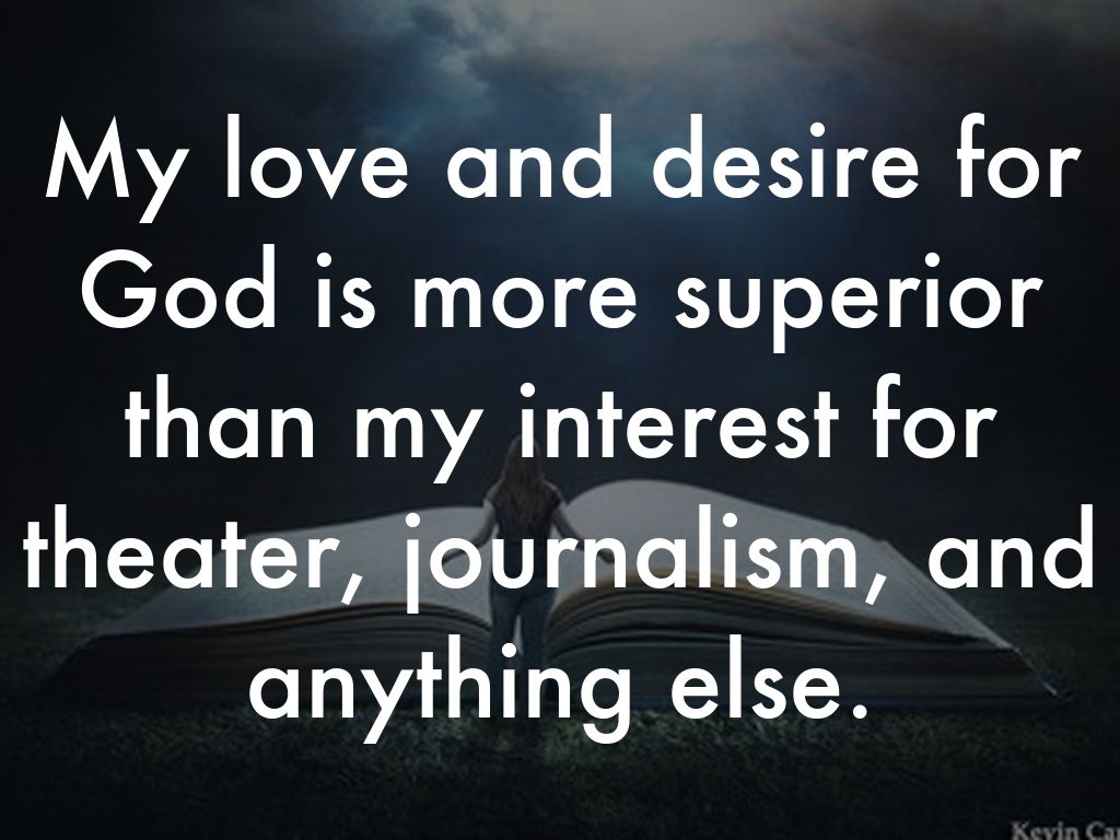 My love and desire for God is more superior than my interest for theater, journalism, and anything else.
