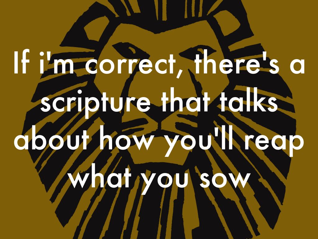 If i'm correct, there's a scripture that talks about how you'll reap what you sow