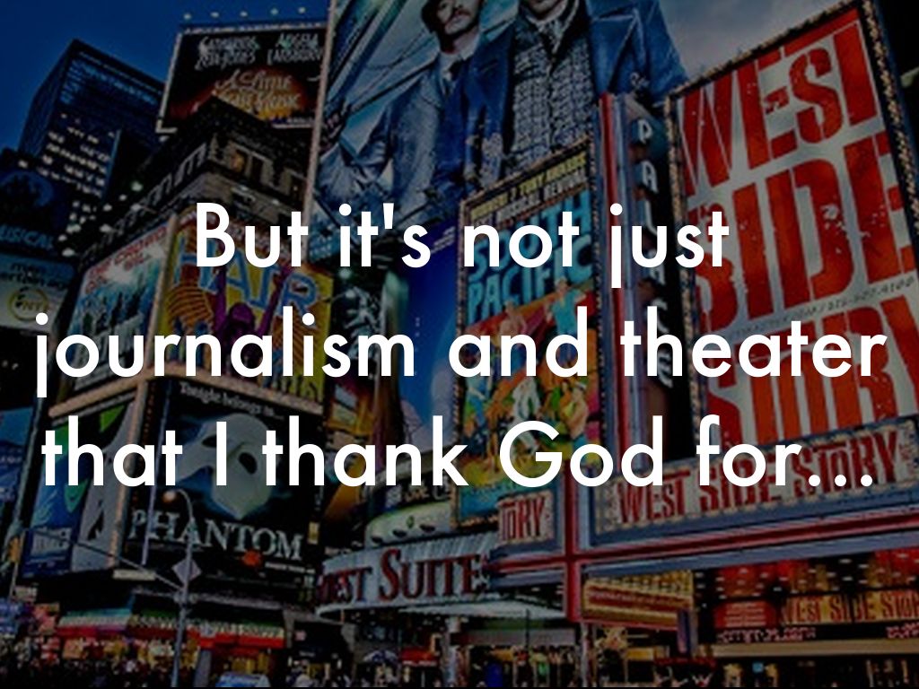 God blessed me by giving me journalism experience by letting me see four Broadway productions for free, and letting me write feature articles for all of them...
