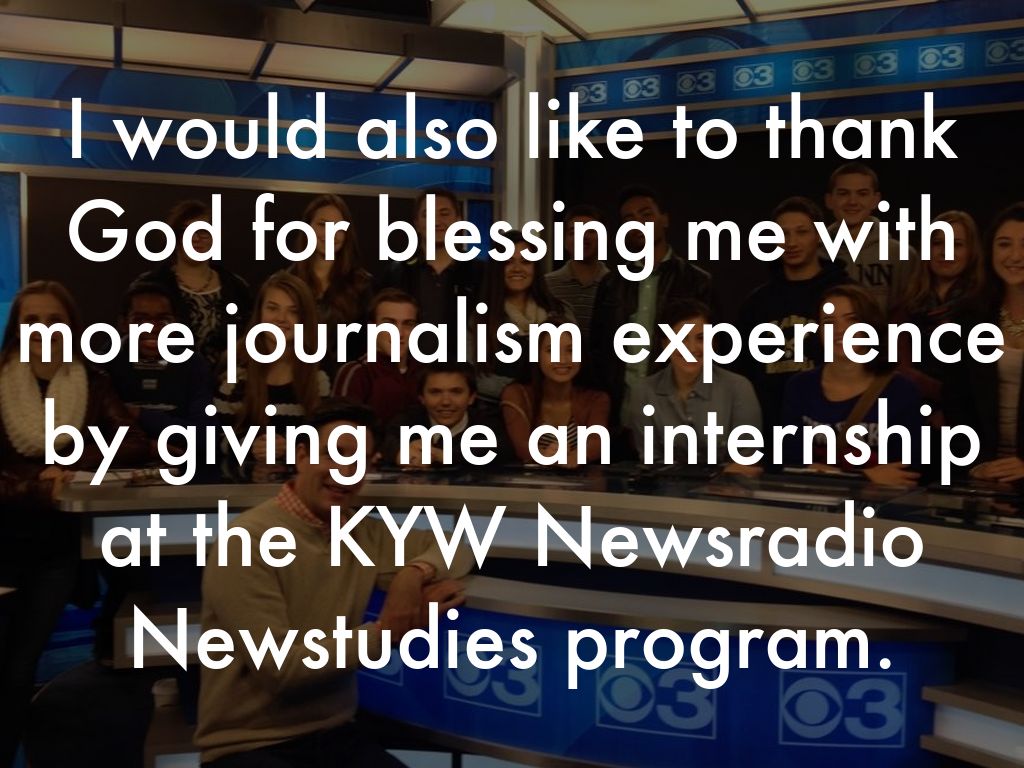 I would also like to thank God for blessing me with more journalism experience by giving me an internship at the KYW Newsradio Newstudies program.