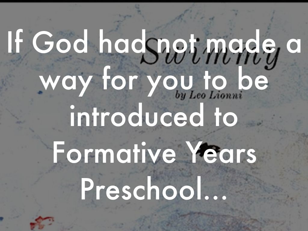 If God had not made a way for you to be introduced to Formative Years Preschool...