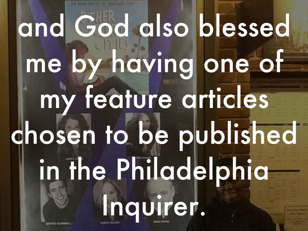 and God also blessed me by having one of my feature articles chosen to be published in the Philadelphia Inquirer.