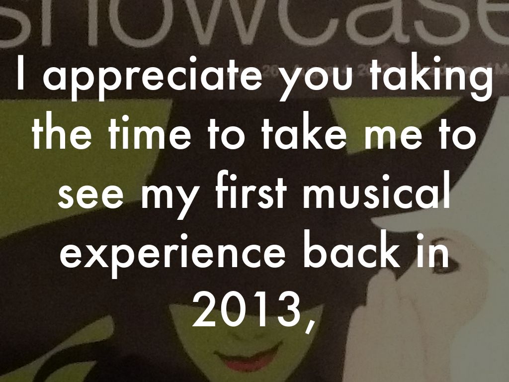 I appreciate you taking the time to take me to see my first musical experience back in 2013,