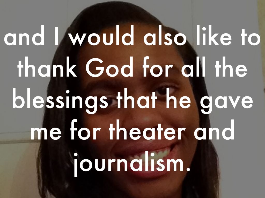 and I would also like to thank God for all the blessings that he gave me for theater and journalism.
