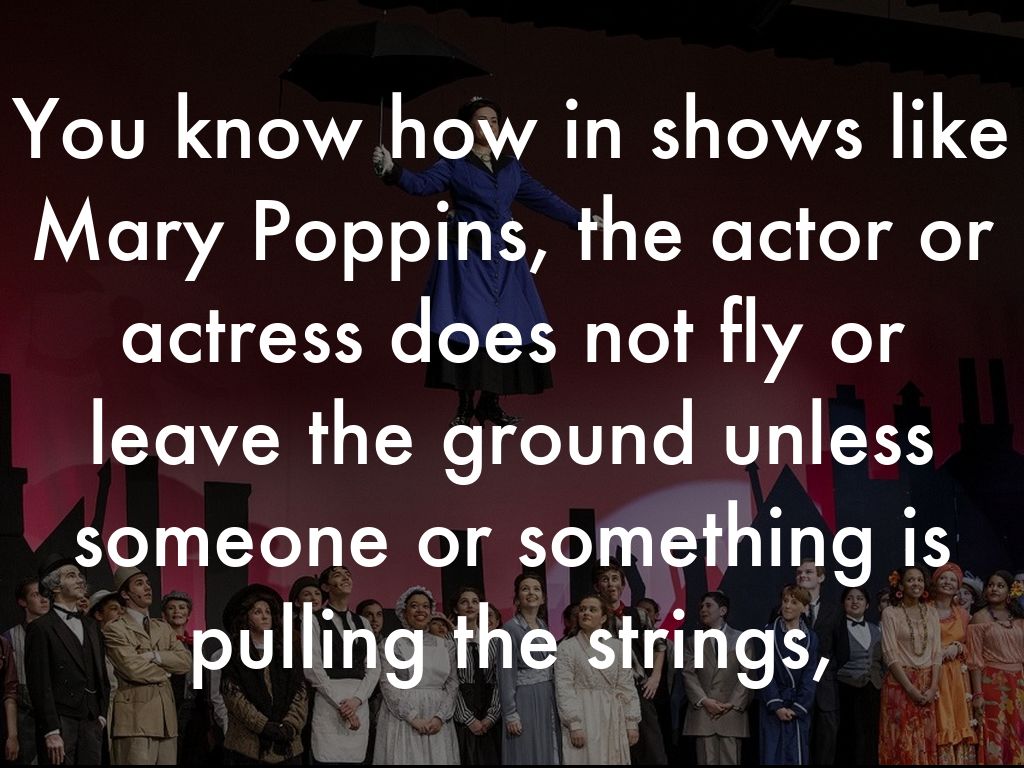 You know how in shows like Mary Poppins, the actor or actress does not fly or leave the ground unless someone or something is pulling the strings,