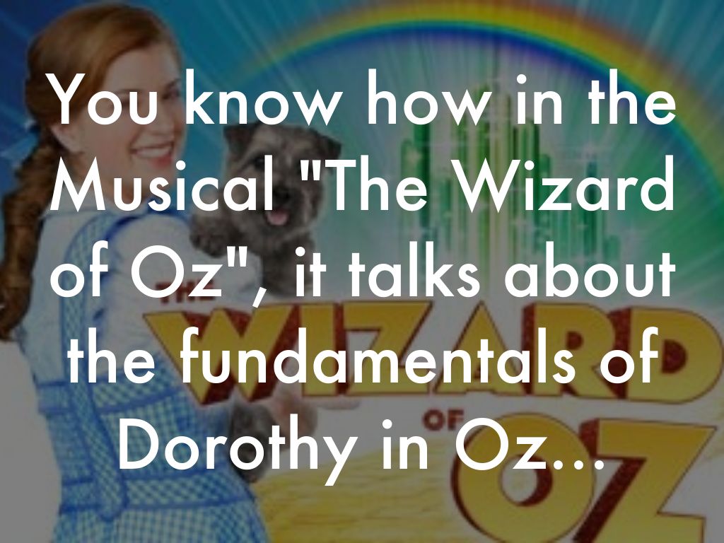 You know how in the Musical "The Wizard of Oz", it talks about the fundamentals of Dorothy in Oz...