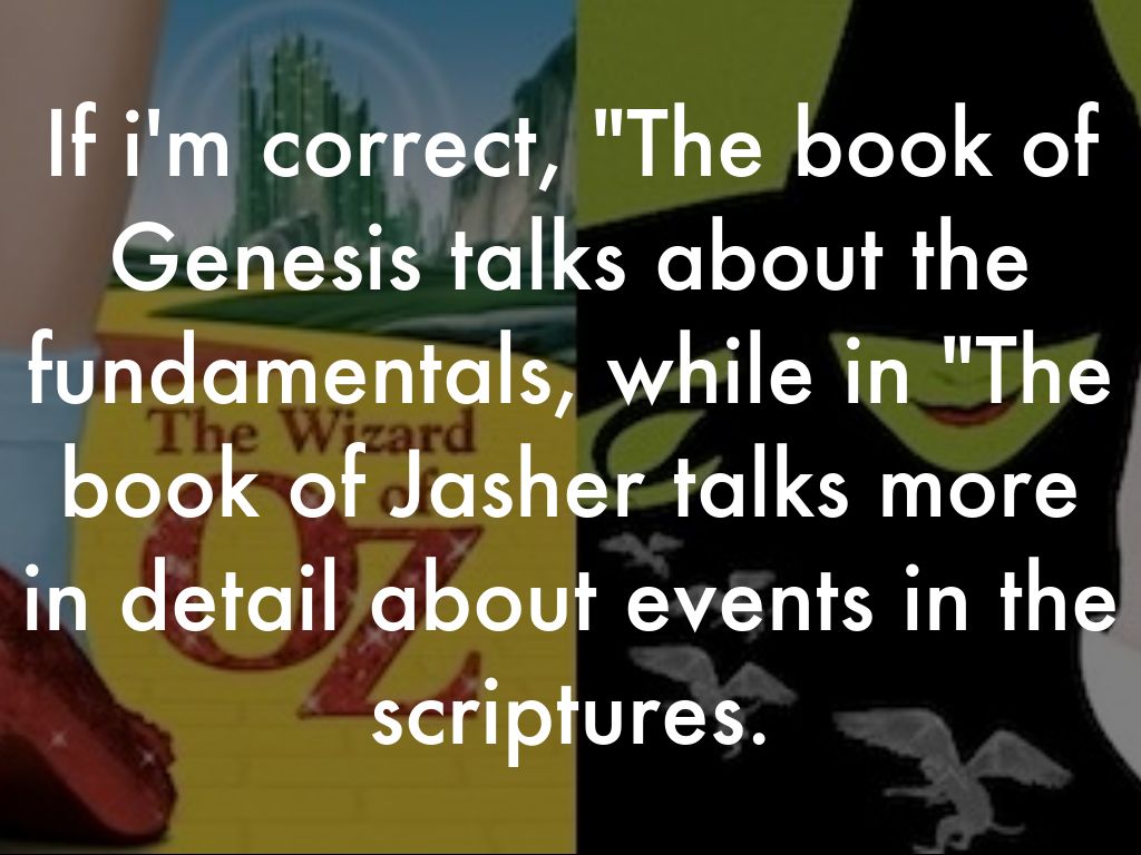 If i'm correct, "The book of Genesis talks about the fundamentals, while in "The book of Jasher talks more in detail about events in the scriptures.