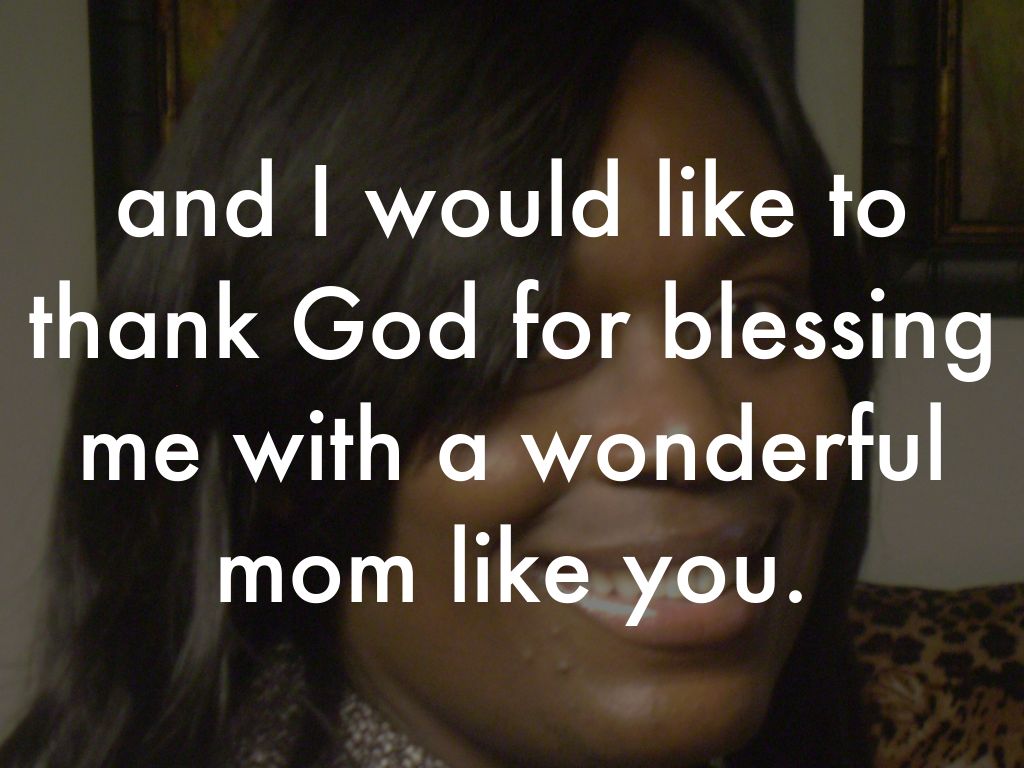 and I would like to thank God for blessing me with a wonderful mom like you.