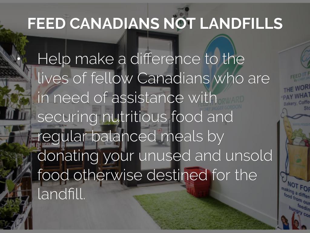 Help make a difference to the lives of fellow Canadians who are in need of assistance with securing nutritious food and regular balanced meals by donating your unused and unsold food otherwise destined for the landfill.