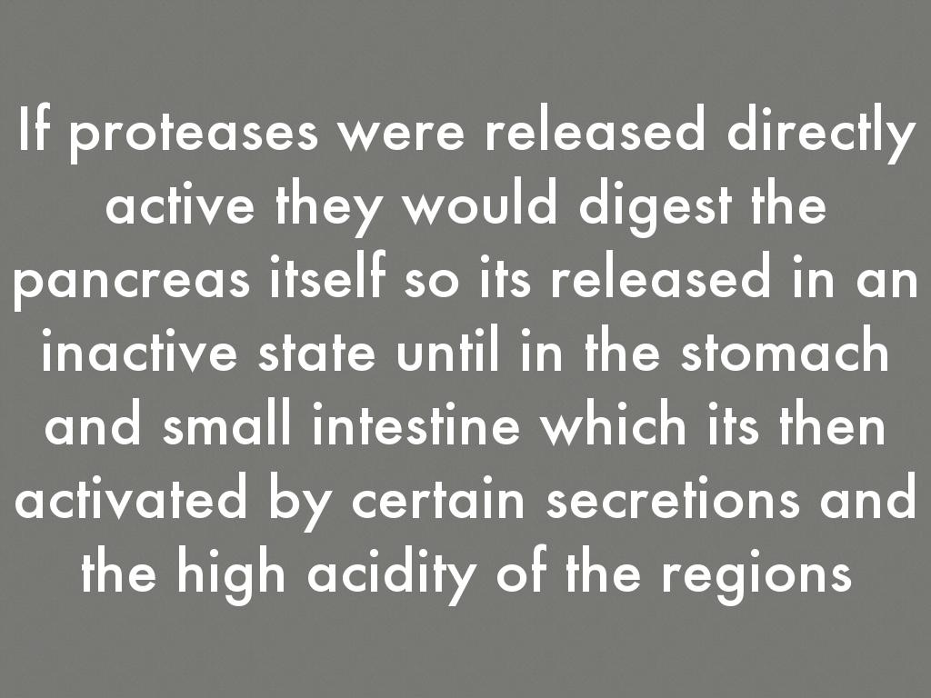 If proteases were released directly active they would digest the pancreas itself so its released in an inactive state until in the stomach and small intestine which its then activated by certain secretions and the high acidity of the regions