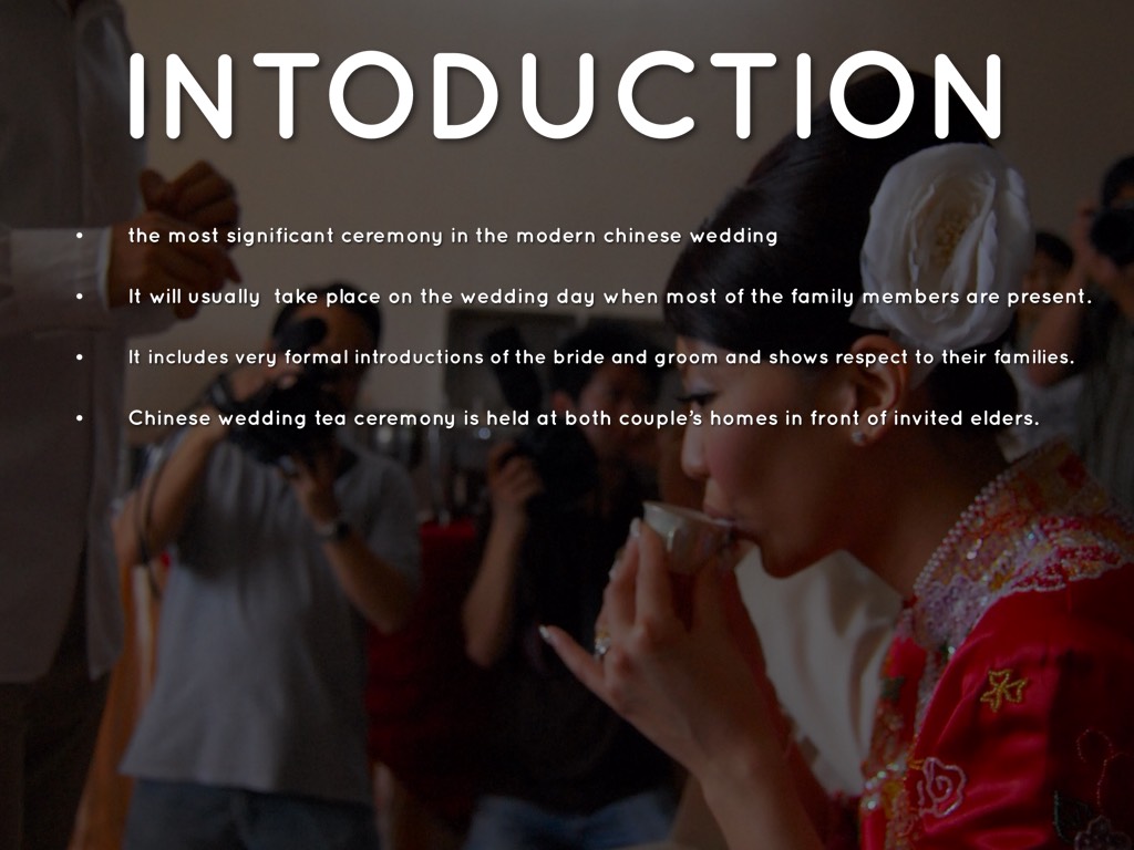 • Chinese wedding tea ceremony is held at both couple’s homes in front of invited elders.