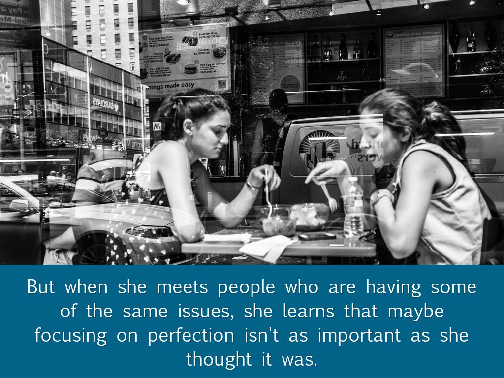Mel: Just like Katrina, Allie meets Mel on the same site as well. All three of them give each other encouragement and share their issues and work through them together.