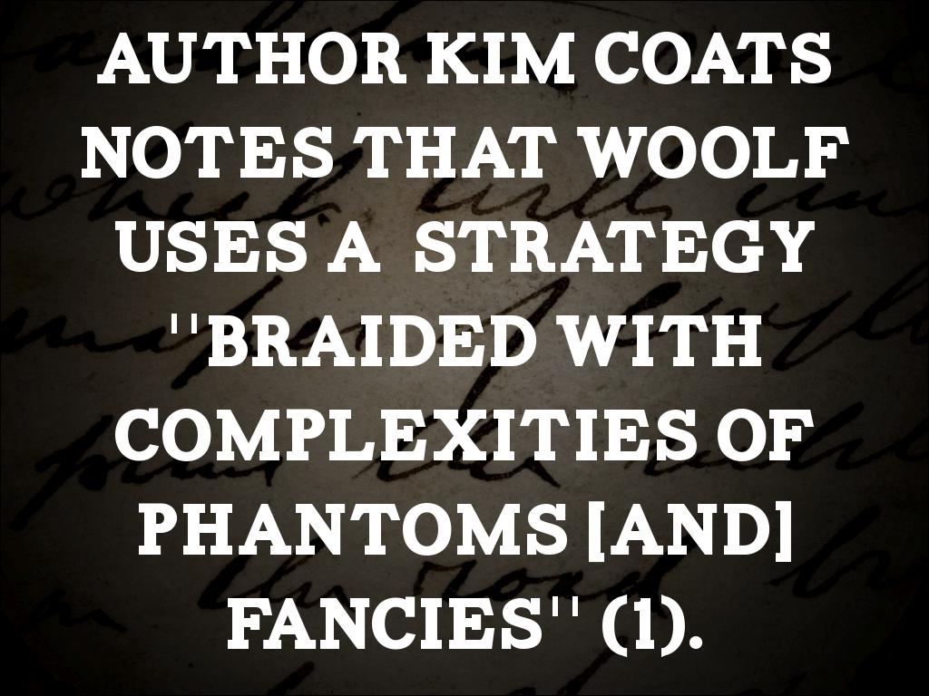 Coates, Kimberly Engdahl. “Phantoms, Fancy (And) Symptoms: Virginia Woolf and The Art Of Being III.” Woolf Studies Annual, vol. 18, 2012, pp. 1–28. JSTOR, JSTOR, www.jstor.org/stable/24906895.