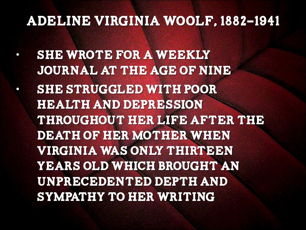 she struggled with poor health and depression throughout her life after the death of her mother when Virginia was only thirteen years old which brought an unprecedented depth and sympathy to her writing