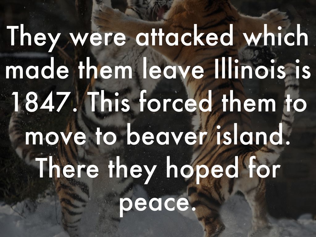 They were attacked which made them leave Illinois is 1847. This forced them to move to beaver island. There they hoped for peace.