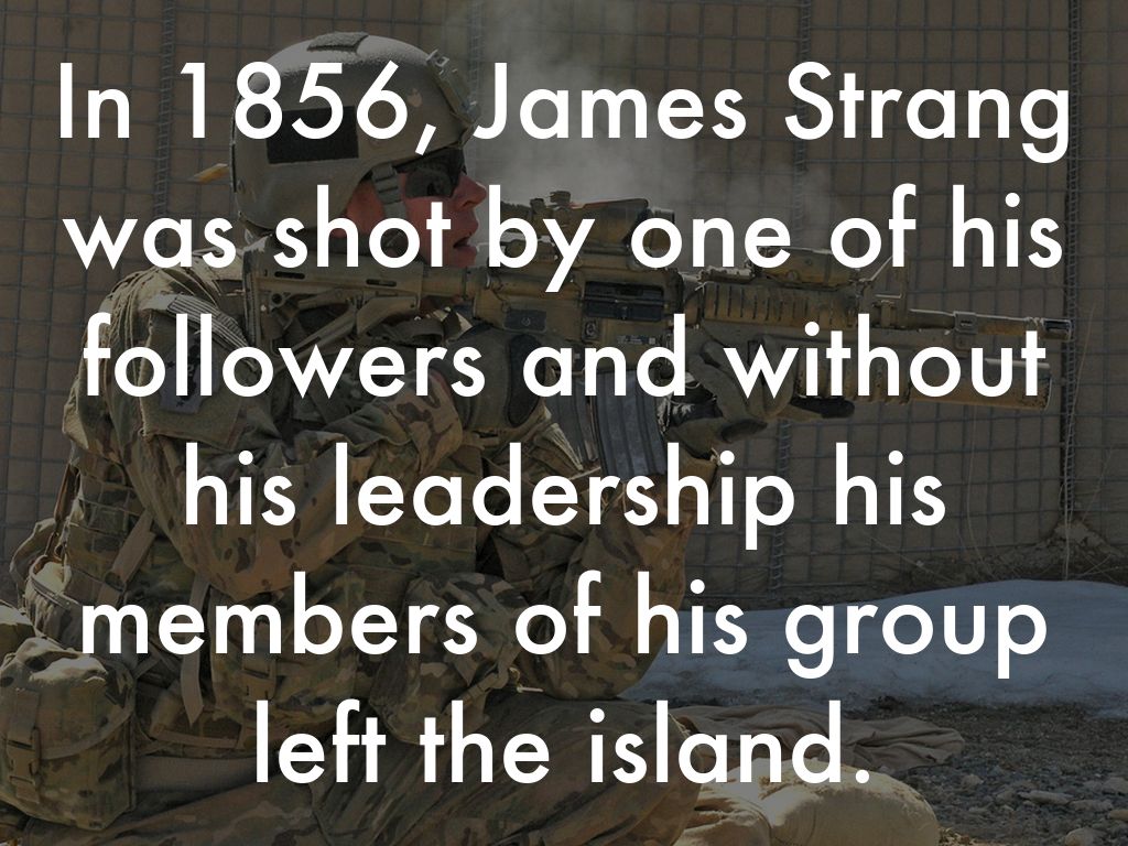 In 1856, James Strang was shot by one of his followers and without his leadership his members of his group left the island.