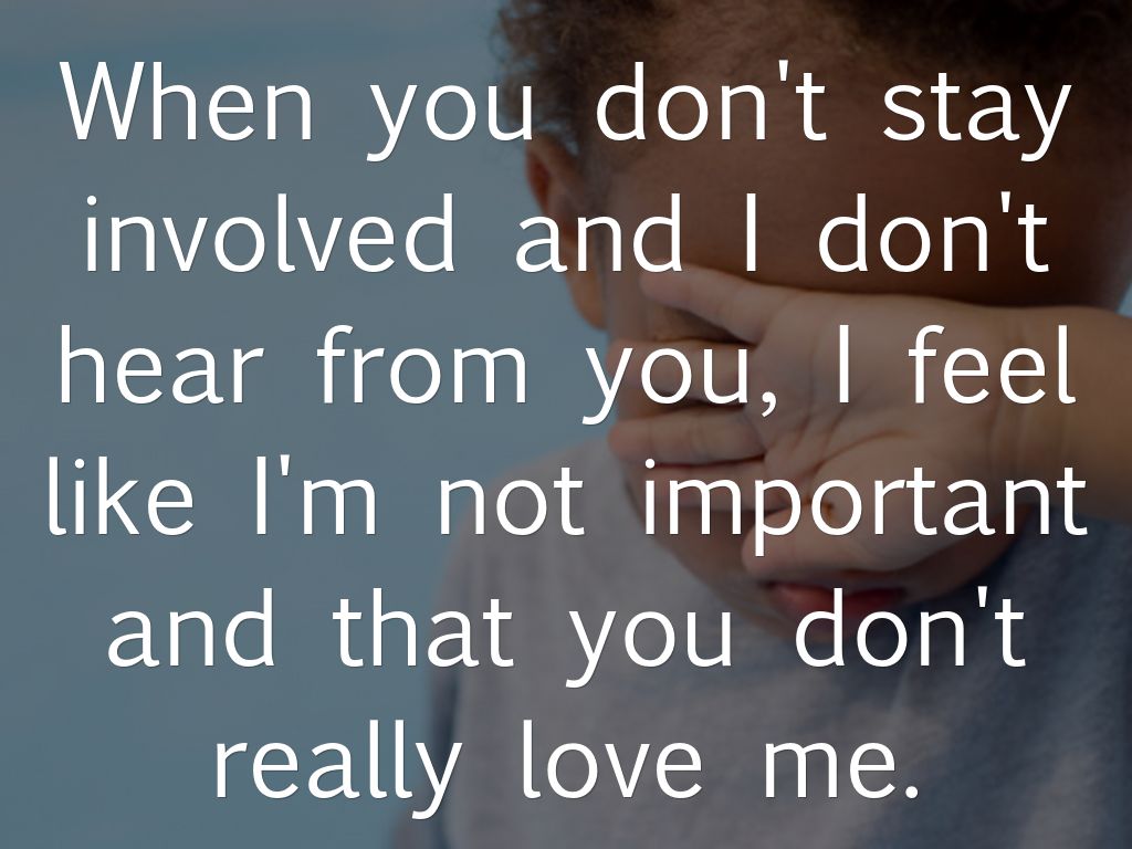 When you don't stay involved and I don't hear from you, I feel like I'm not important and that you don't really love me.
