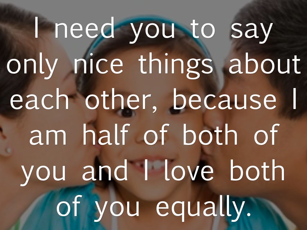 I need you to say only nice things about each other, because I am half of both of you and I love both of you equally.