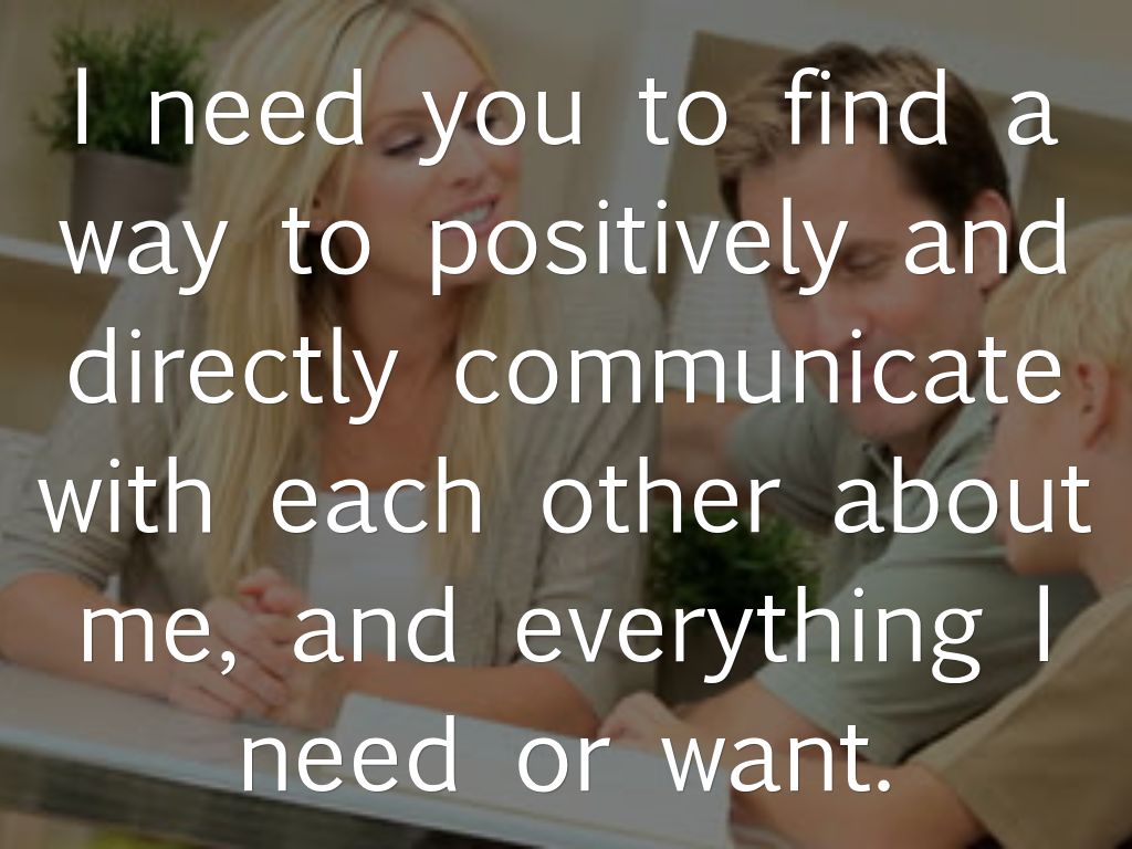 I need you to find a way to positively and directly communicate with each other about me, and everything I need or want.
