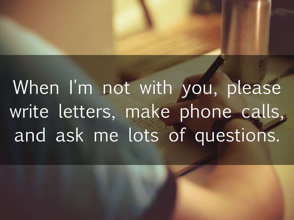 When I'm not with you, please write letters, make phone calls, and ask me lots of questions.