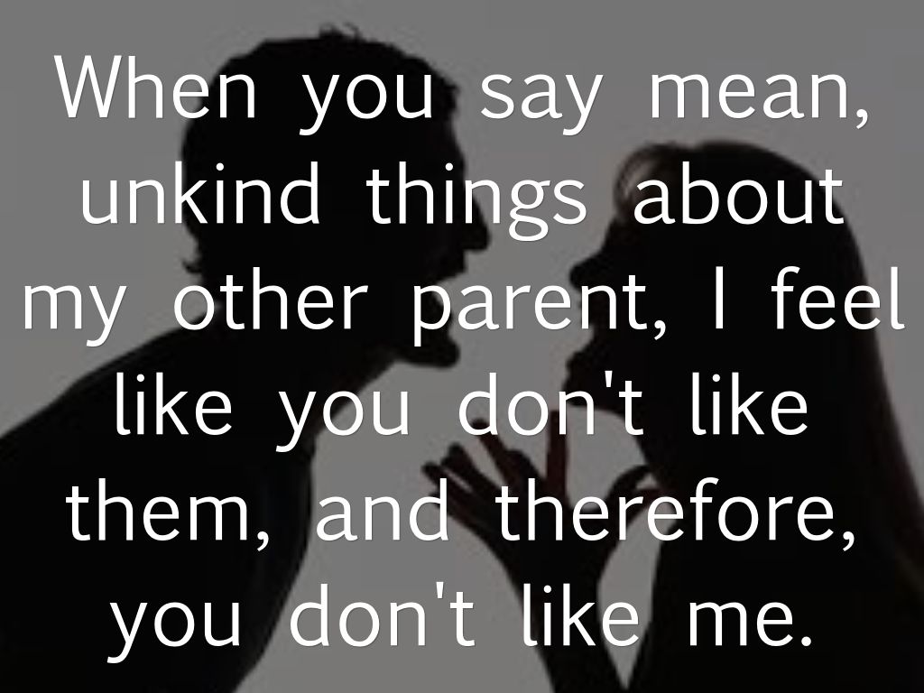 When you say mean, unkind things about my other parent, I feel like you don't like them, and therefore, you don't like me.