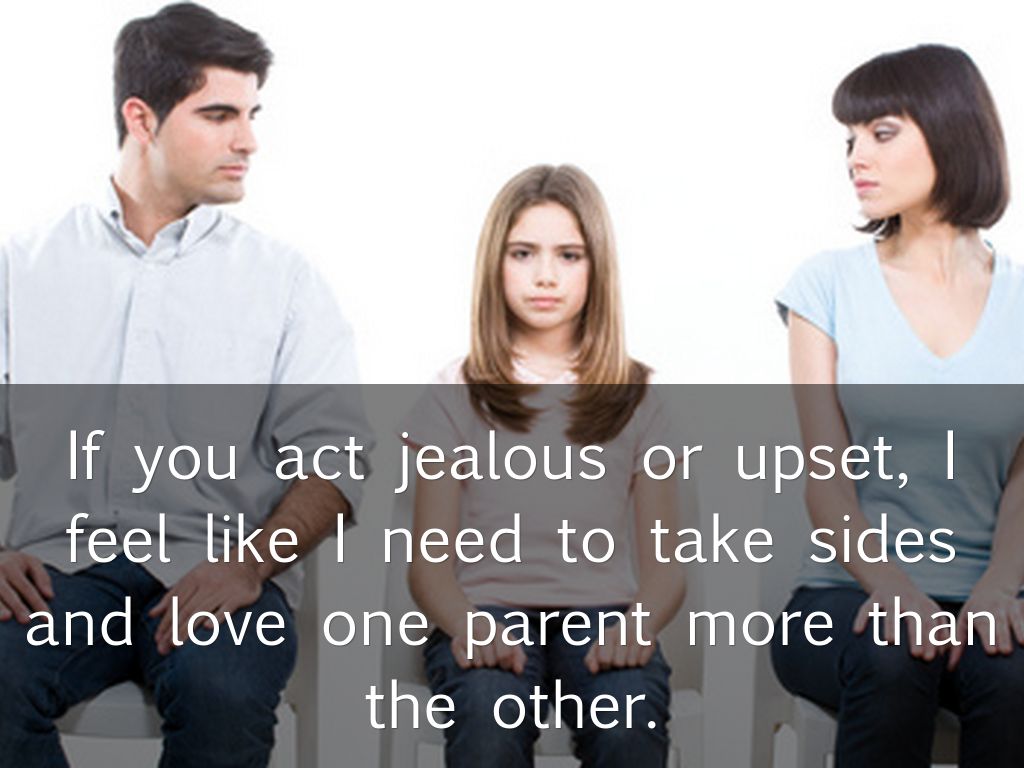 If you act jealous or upset, I feel like I need to take sides and love one parent more than the other.