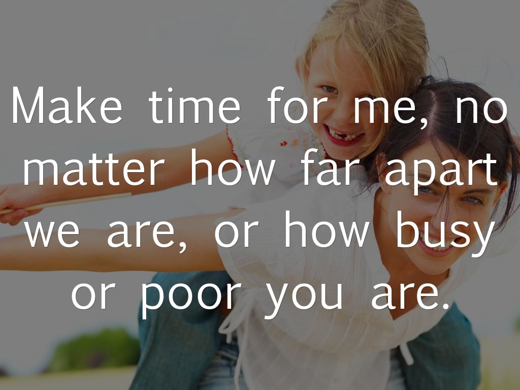 Make time for me, no matter how far apart we are, or how busy or poor you are.