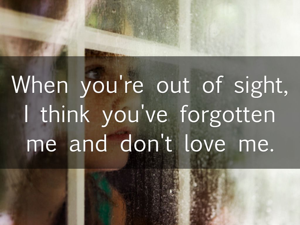 When you're out of sight, I think you've forgotten me and don't love me.