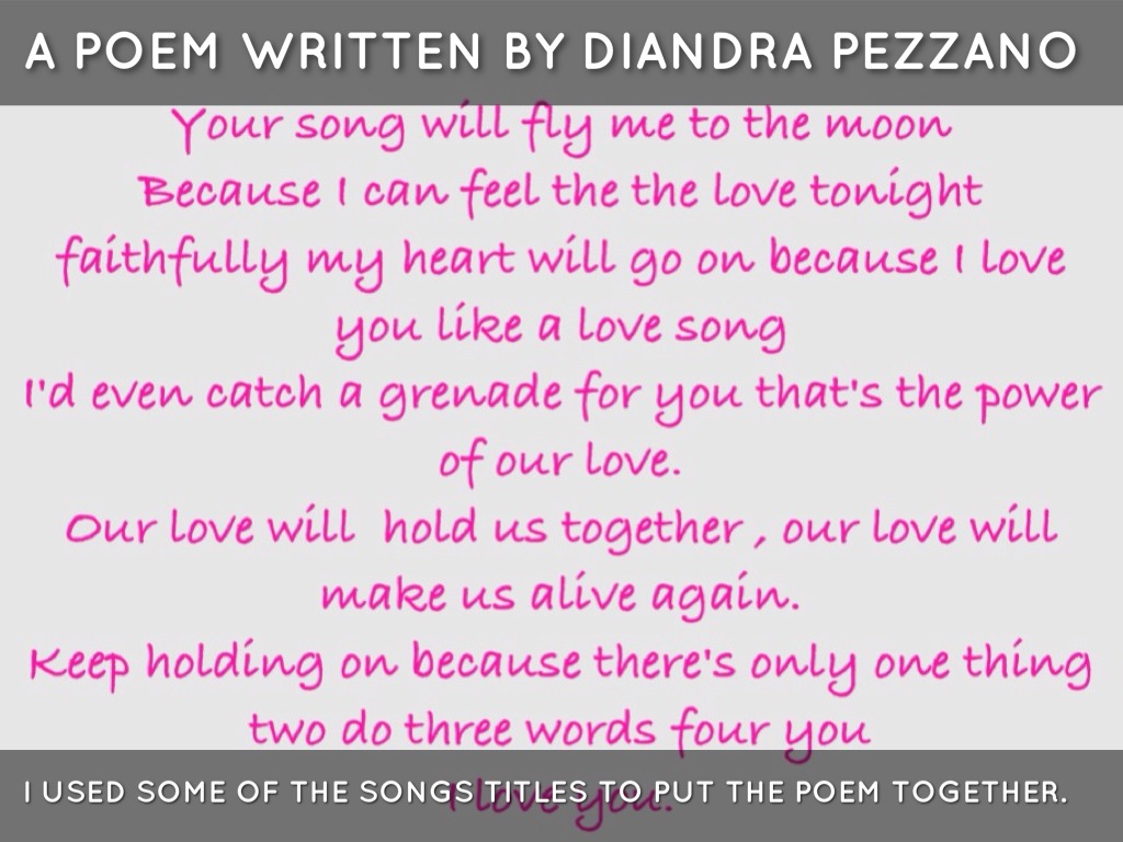 I USED SOME OF THE SONGS TITLES TO PUT THE POEM TOGETHER.