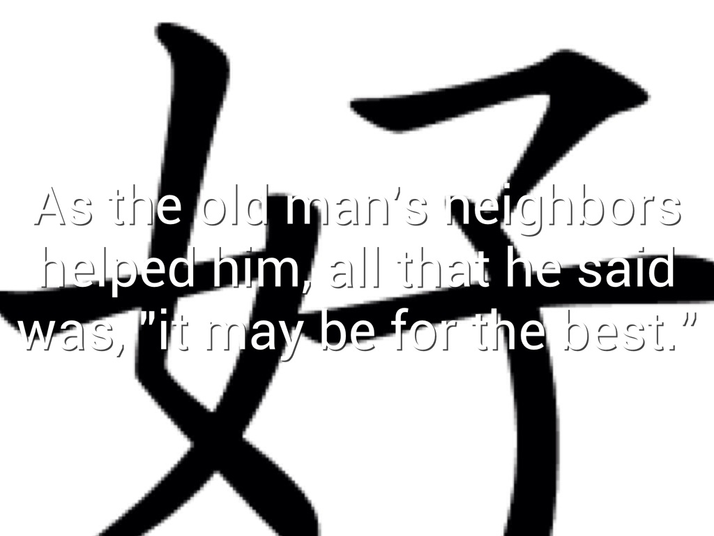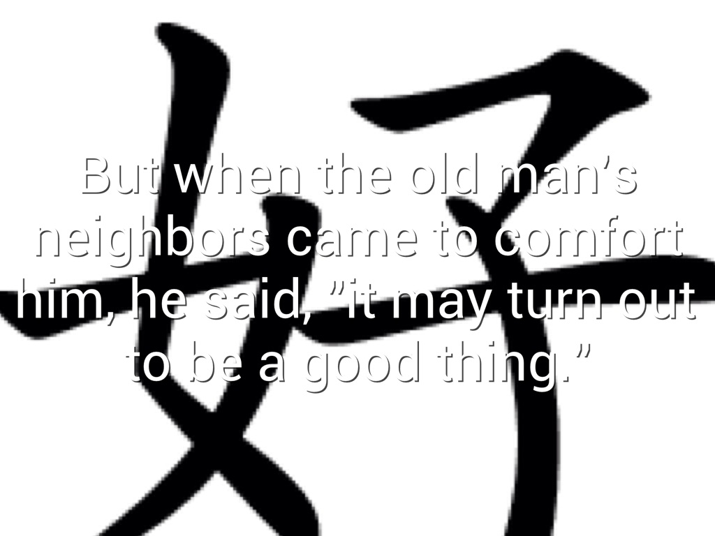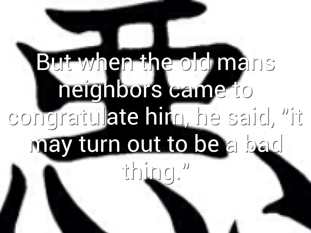 But when the old man's neighbors came to comfort him, he said, "it may turn out to be a good thing."