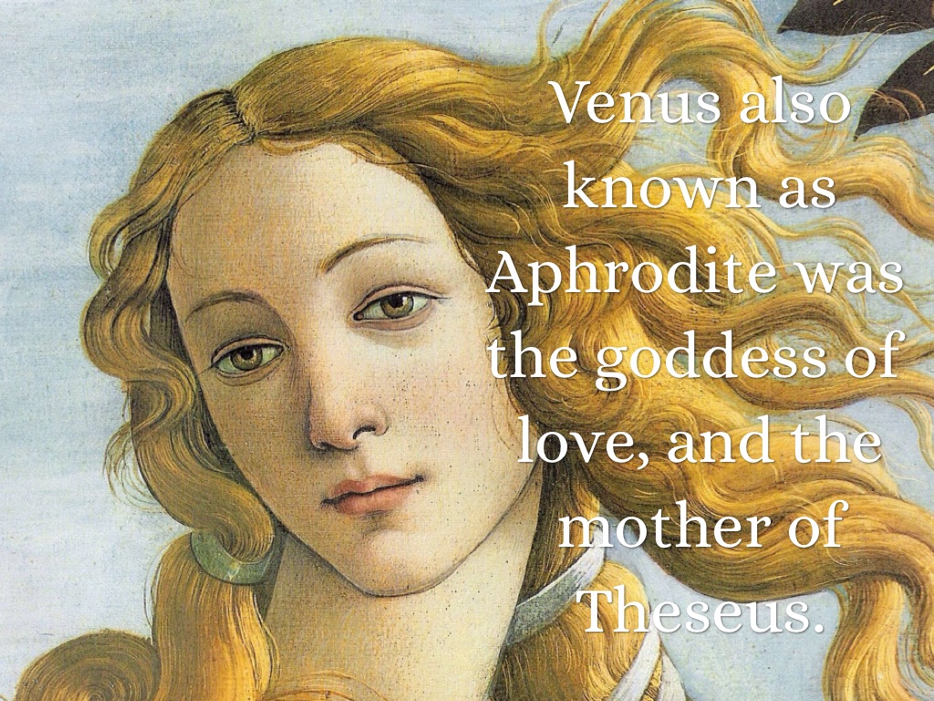 Venus also known as Aphrodite was the goddess of love, and the mother of Theseus.