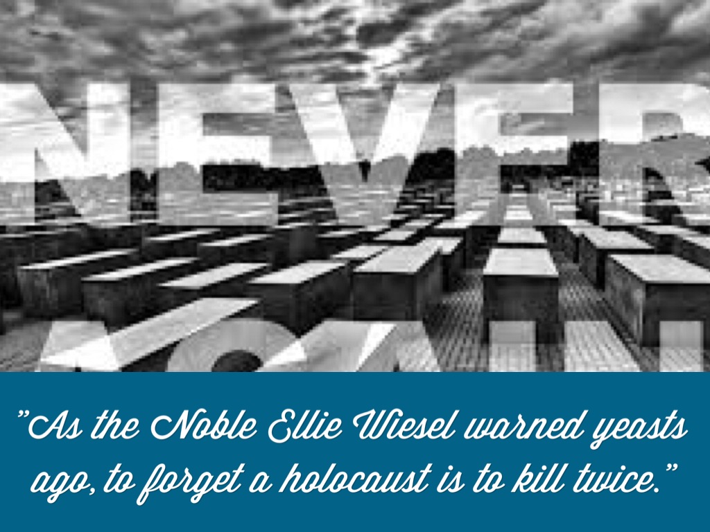 "As the Noble Ellie Wiesel warned yeasts ago, to forget a holocaust is to kill twice."