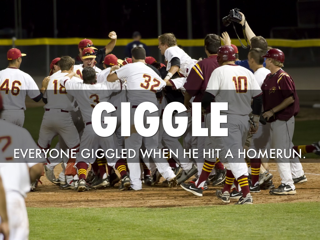 EVERYONE GIGGLED WHEN HE HIT A HOMERUN.