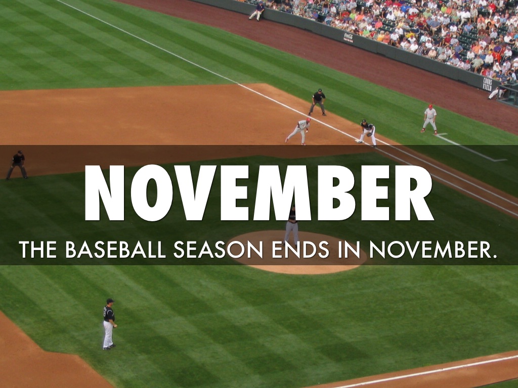 THE BASEBALL SEASON ENDS IN NOVEMBER.