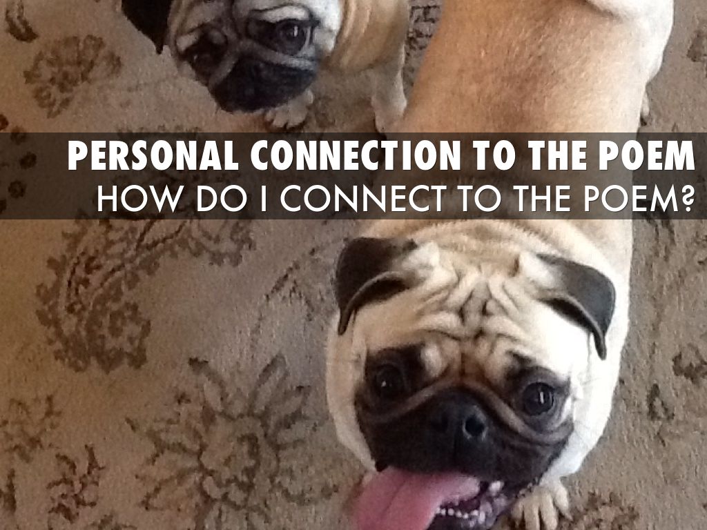 I connect to this poem because I have two pugs. I often joke around with my family about them and often use the same hyperboles. I like the end because we say they look like pigs too.