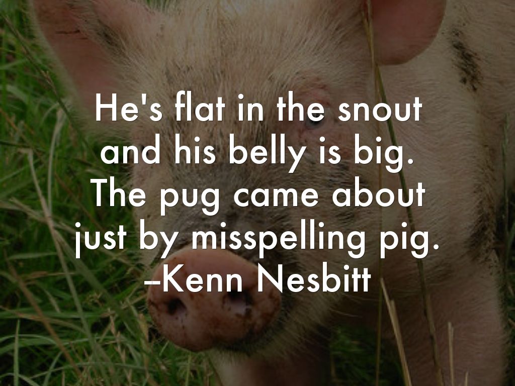 I think what Kenn Nesbitt was trying to say in this poem is how funny pugs are... in their looks alone. I also think another part is that it's ok to laugh a little.