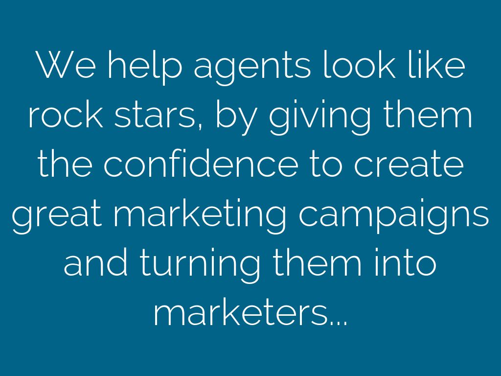 We help agents look like rock stars, by giving them the confidence to create great marketing campaigns and turning them into marketers...