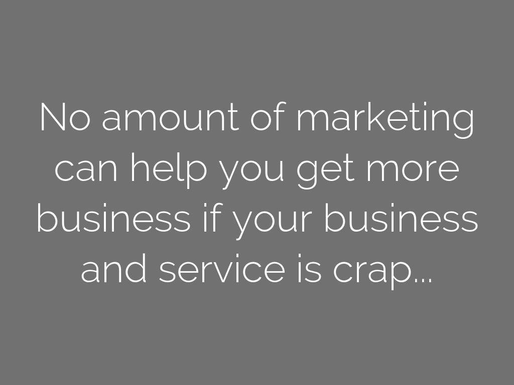 No amount of marketing can help you get more business if your business and service is crap...