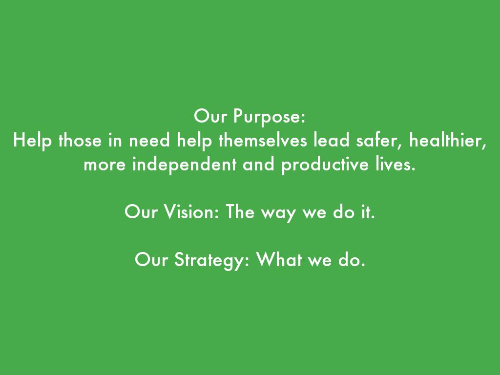 Help those in need help themselves lead safer, healthier, more independent and productive lives.