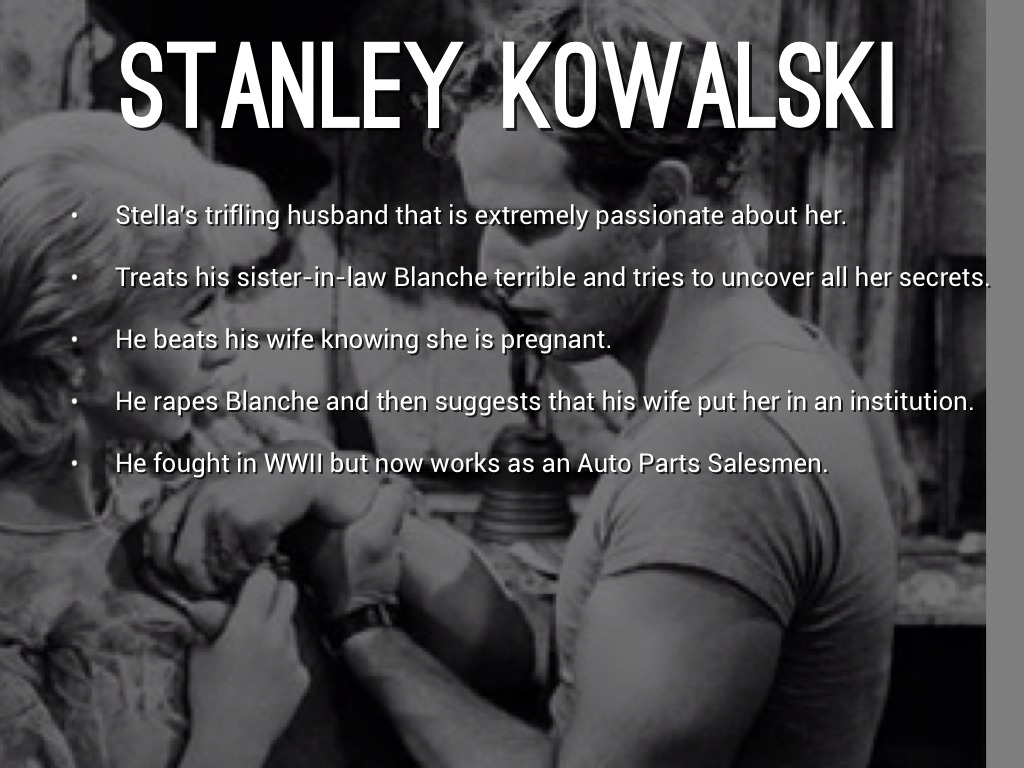 He rapes Blanche and then suggests that his wife put her in an institution.