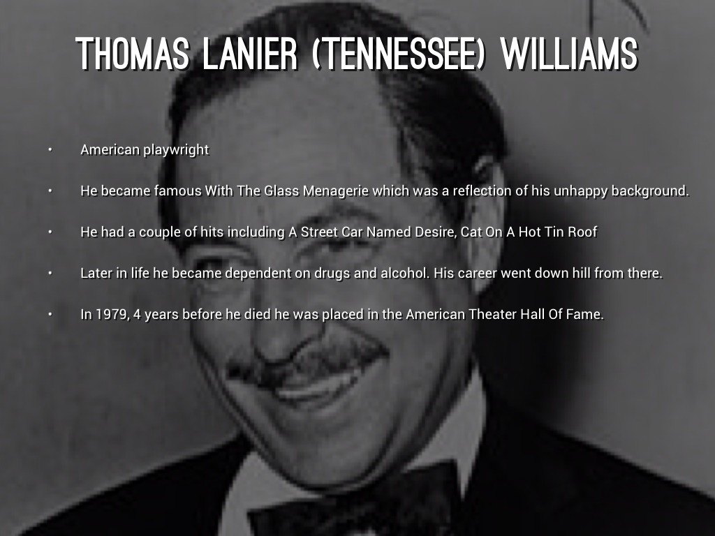 He became famous With The Glass Menagerie which was a reflection of his unhappy background.