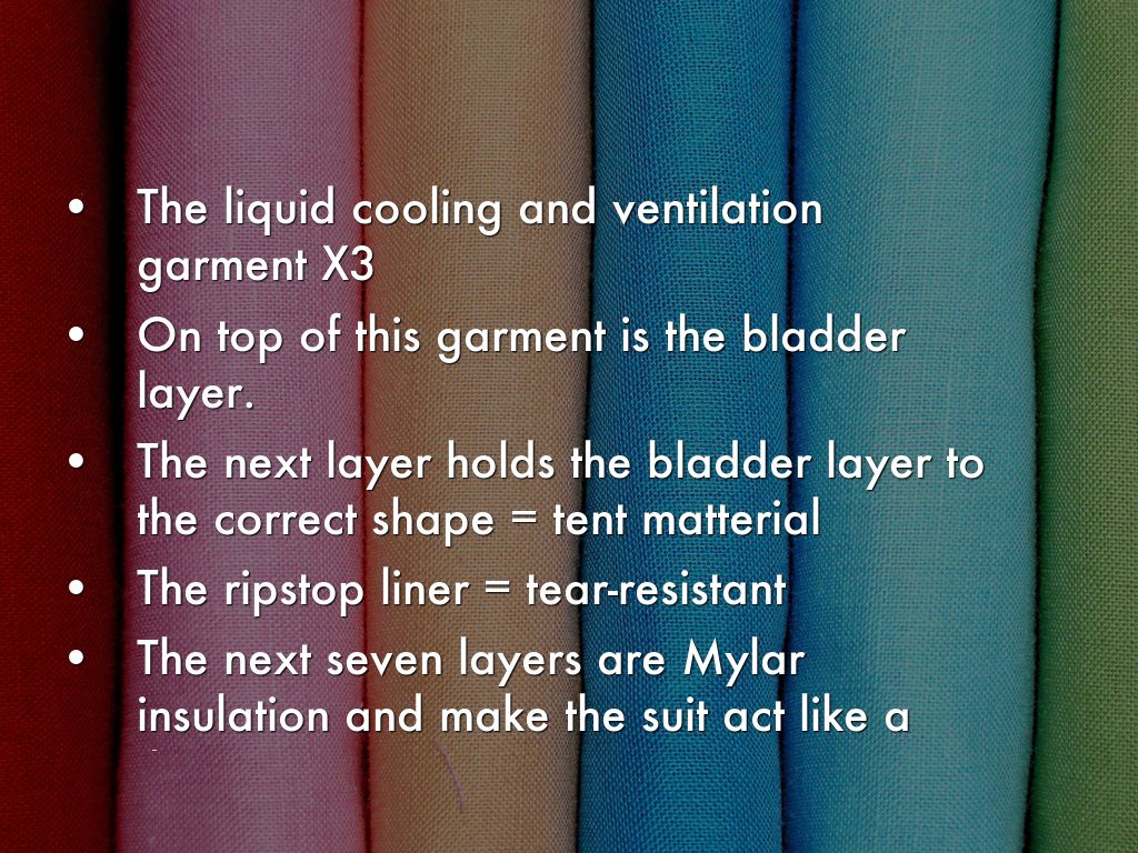 The next layer holds the bladder layer to the correct shape = tent matterial