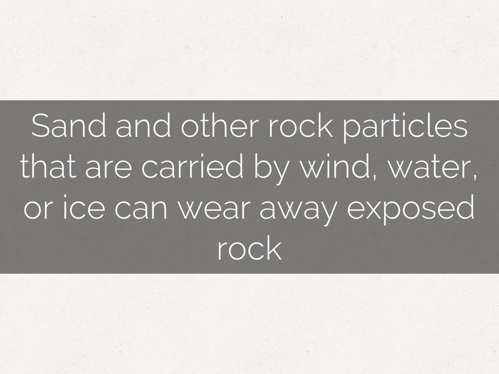 Sand and other rock particles that are carried by wind, water, or ice can wear away exposed rock