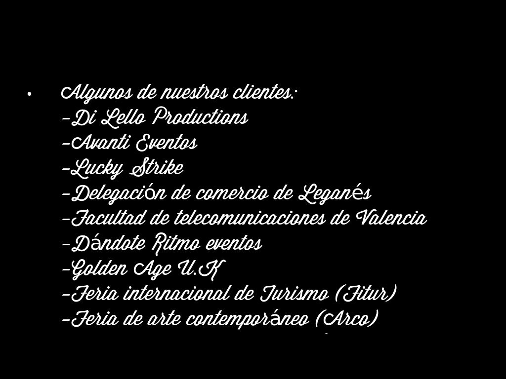 Habiendo realizado trabajos para eventos,bodas,congresos,meetings,espectáculos,etc...