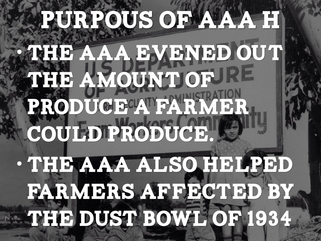 Agricultural Adjustment Administration (AAA), in American history, major New Deal program to restore agricultural prosperity by reducing export surpluses, and raising prices.