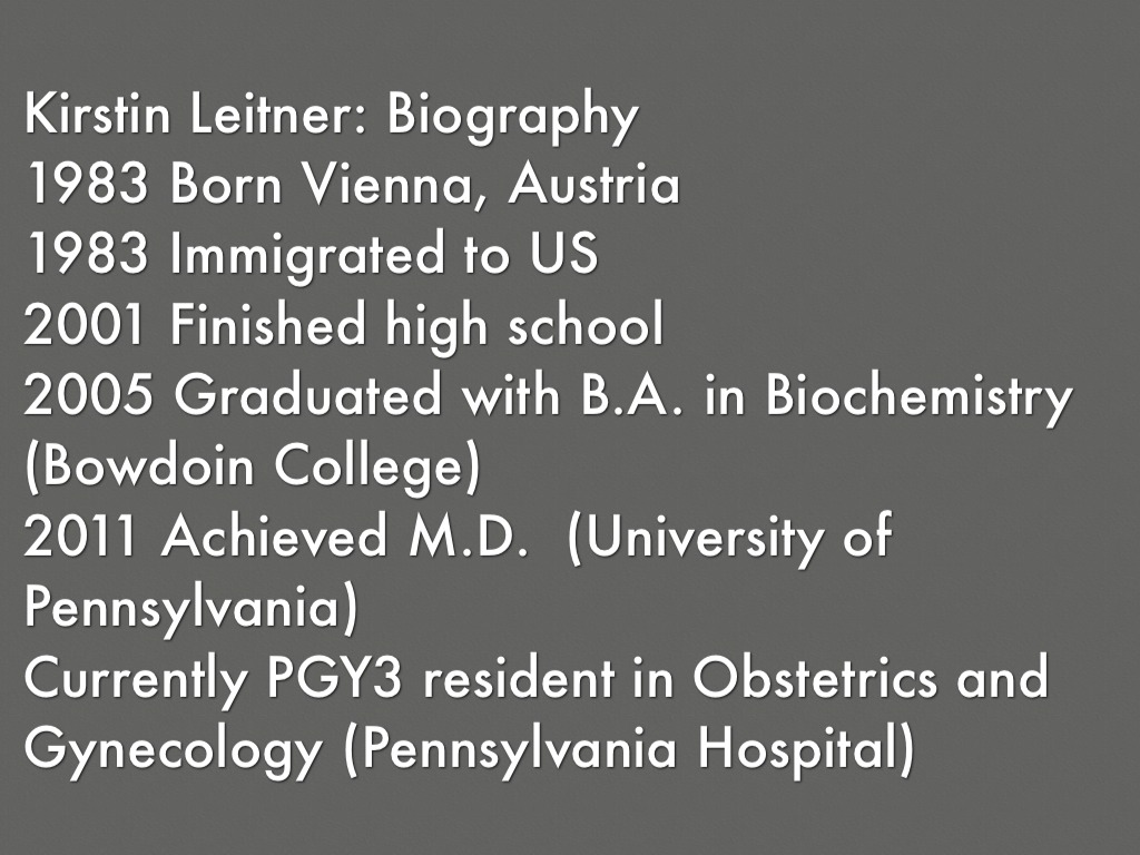 Currently PGY3 resident in Obstetrics and Gynecology (Pennsylvania Hospital)